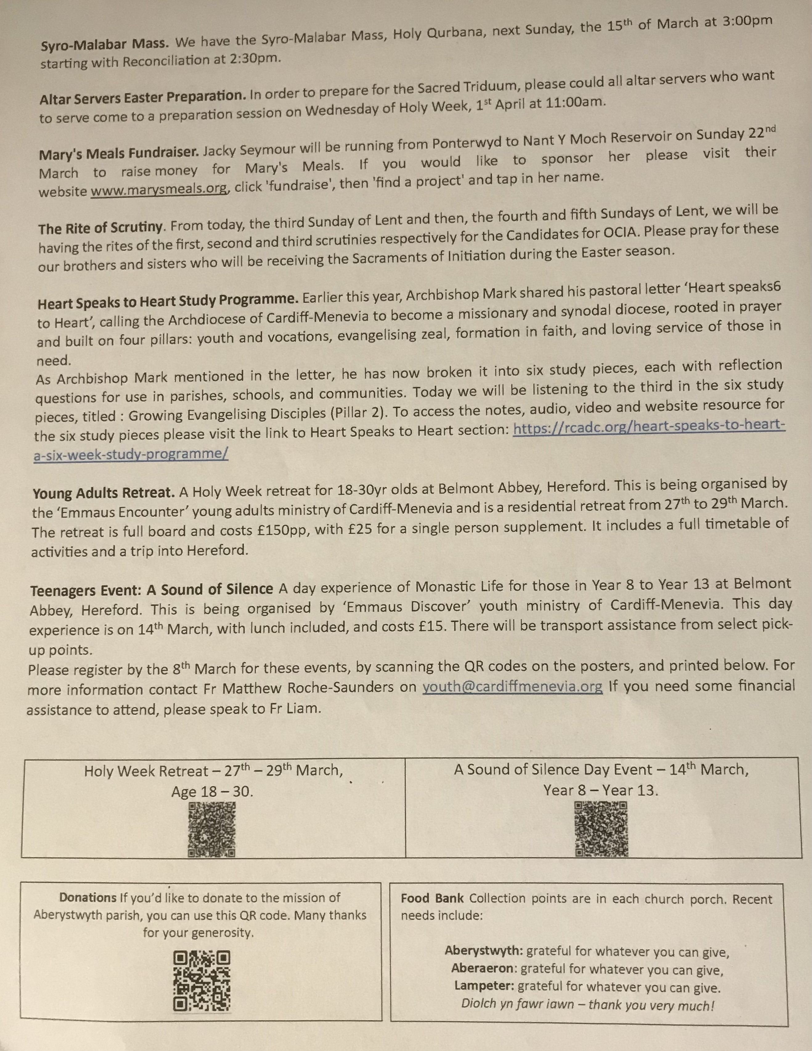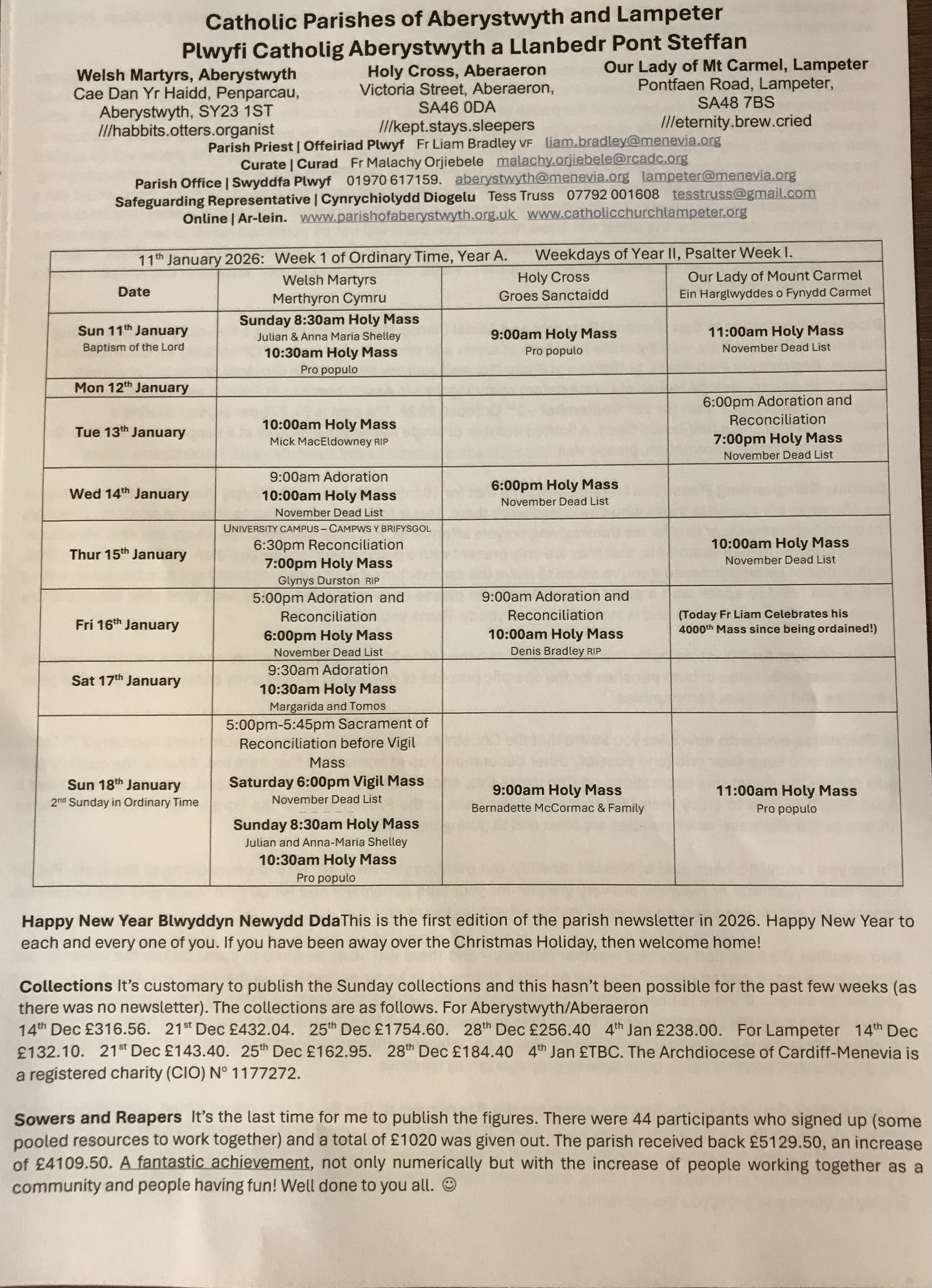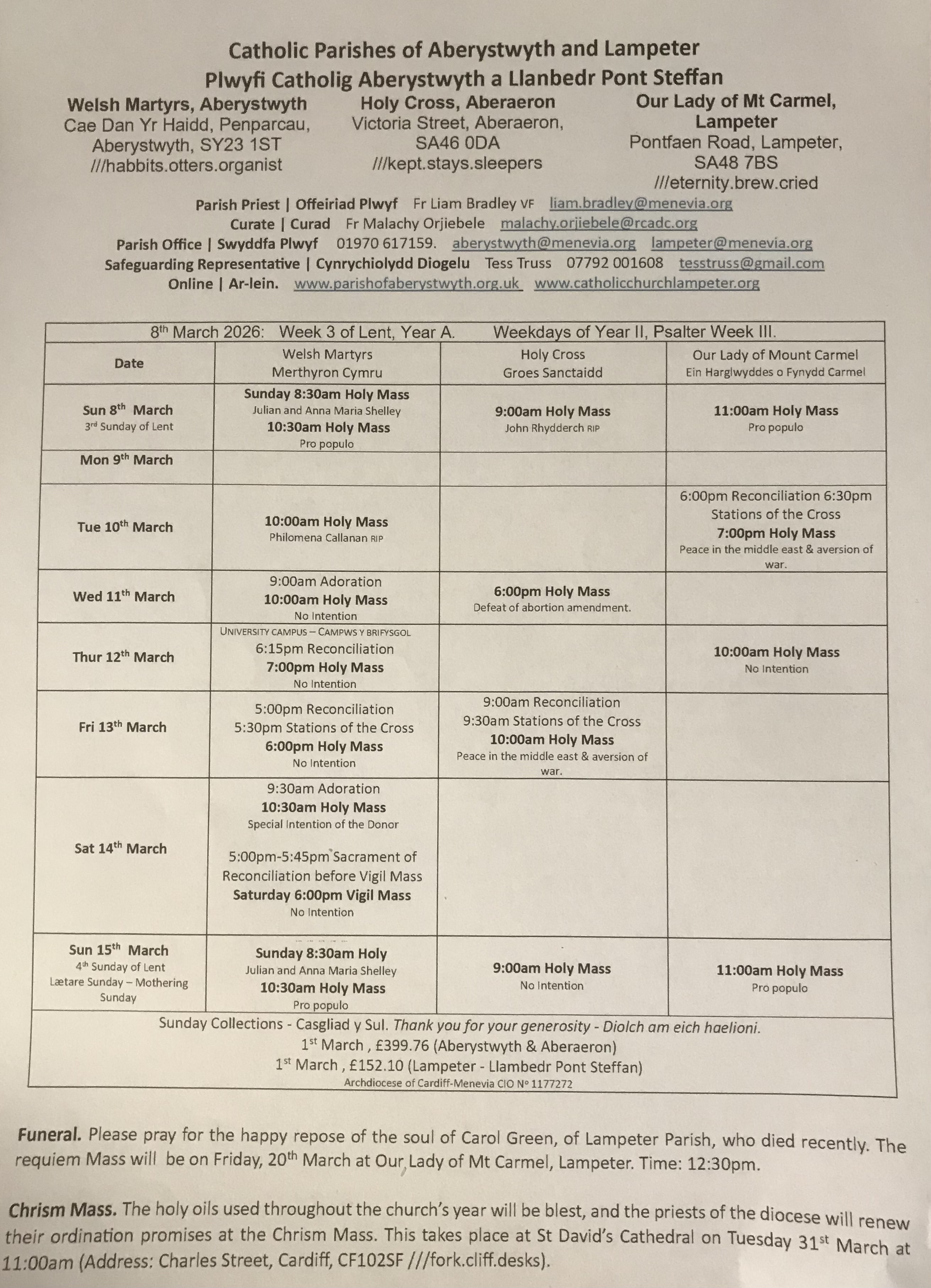 Holy Mass is scheduled for every Sunday in Lampeter at 11am