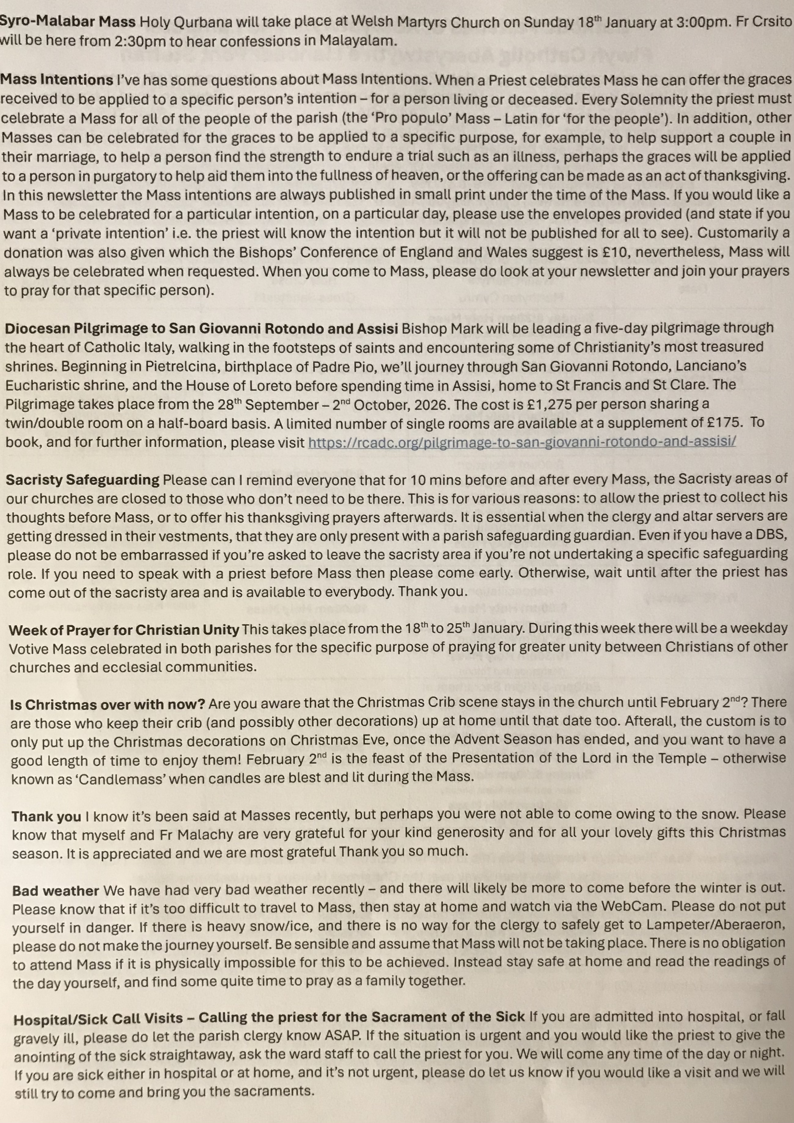for weekday Mass times, or contact parish.